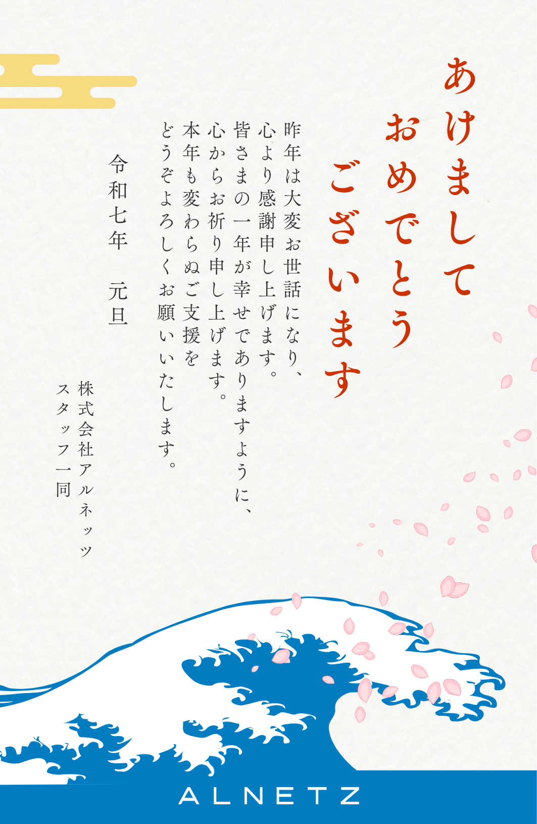 あけましておめでとうございます 昨年は大変お世話になり、心より感謝申し上げます。 皆さまの一年が幸せでありますように、心からお祈り申し上げます。 本年も変わらぬご支援をどうぞよろしくお願いいたします。 令和七年元旦 株式会社アルネッツ スタッフ一同