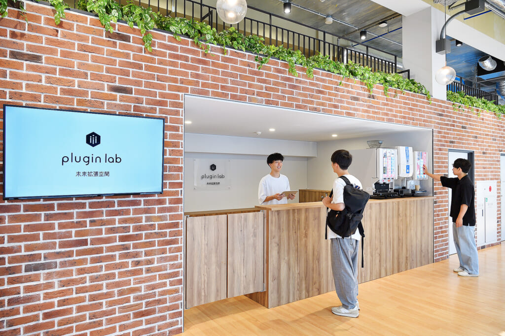 plugin labは、企業のスポンサーシップによって運営されており、企業のサポートを通じて学生と企業のつながりを深めています。 店舗内ではデジタルサイネージを活用し、スポンサー企業の広告やイベント情報、また学生向けの求人情報などを幅広く配信しています。