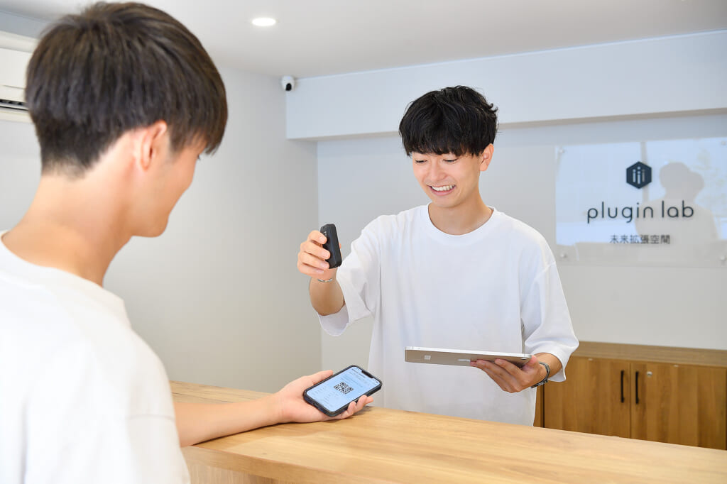 スポンサー企業のコンテンツに加え、「plugin lab」独自のコンテンツも放映しています。例えば、店舗限定イベントの告知を行っており、受付時にご案内できない場合でも、QRコードをコンテンツ内に表示することで、会員が手軽に情報をスマートフォンに取り込めるよう工夫しています。これが、1つの集客ツールとしても役立っています。